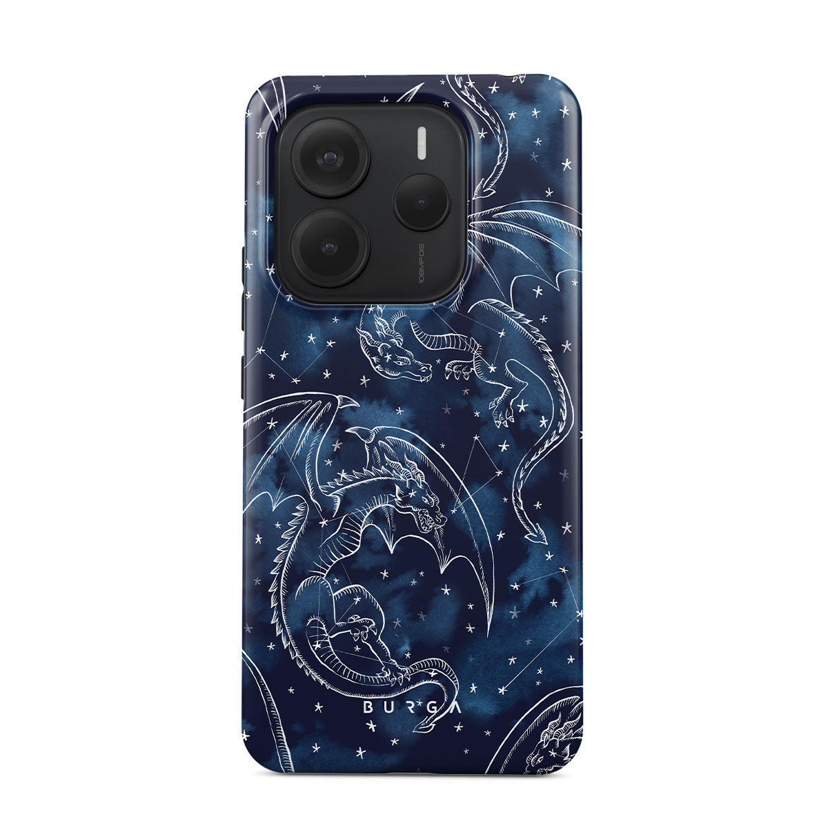 Kenmerken van dit design: draken, sterren, sterrenbeelden, donkerblauwe lucht