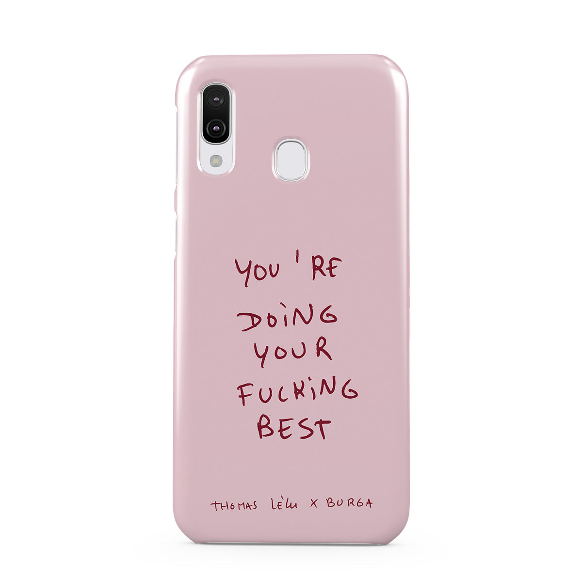 Kenmerken van dit design: handgeschreven tekst, citaat, roze achtergrond