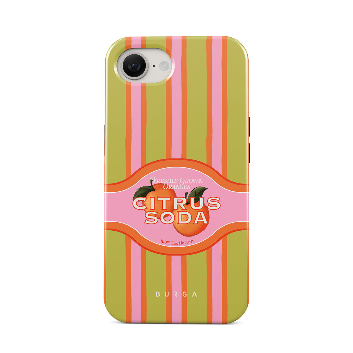 Kenmerken van dit design: levendige citrusstrepen, tekst, citrusplanten, mandarijnen, grapefruit